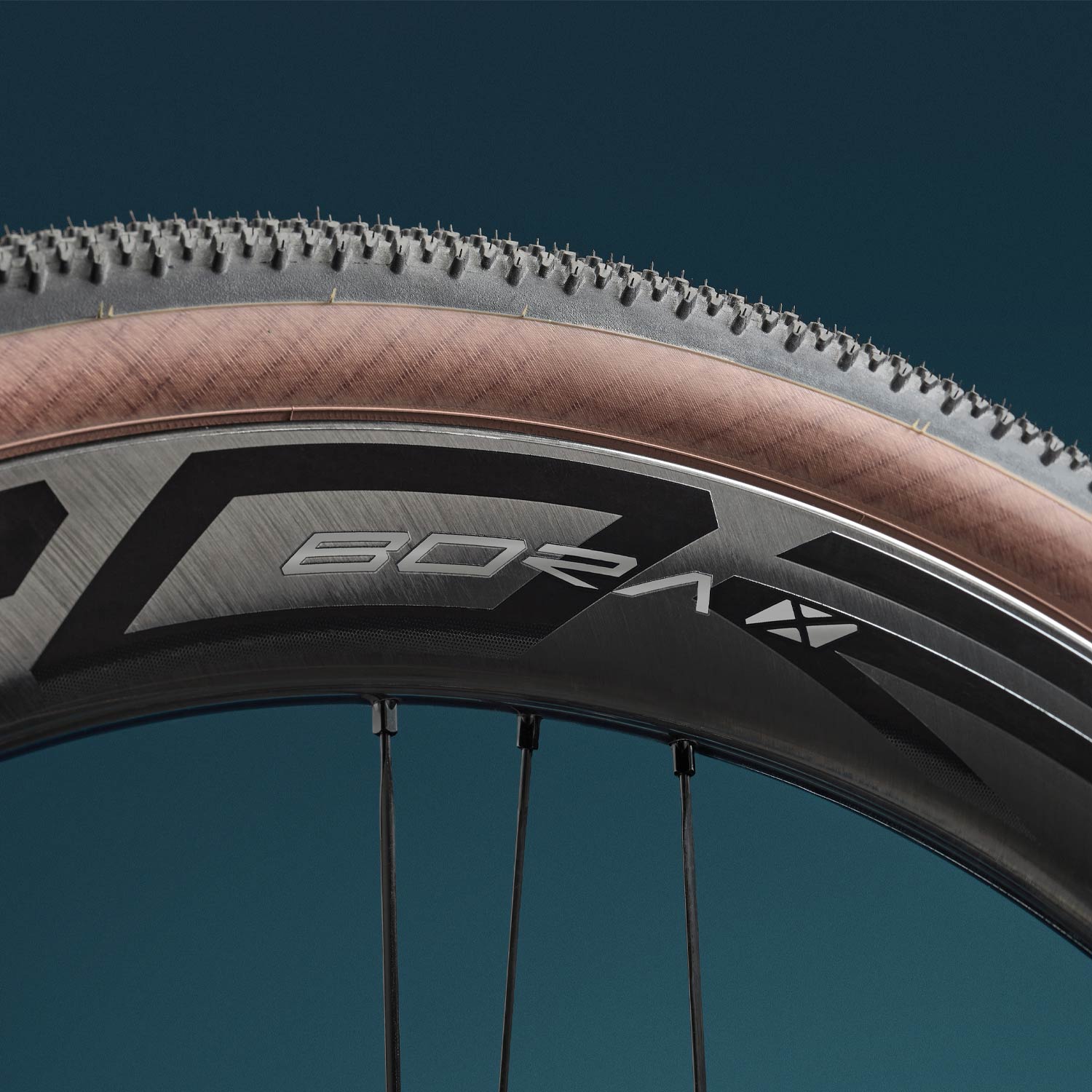 With a 50mm profile and a 27mm hooked channel, ideal for tyres starting from 35mm, Bora X has inherited from the road version the unidirectional layup of fibers, based on workloads, and reinterprets the iconic G3 spoke pattern with a specific configuration for fast gravel riding, combining aerodynamic and elliptical spokes to reduce turbulence, improve air penetration, and balance rigidity and comfort.
